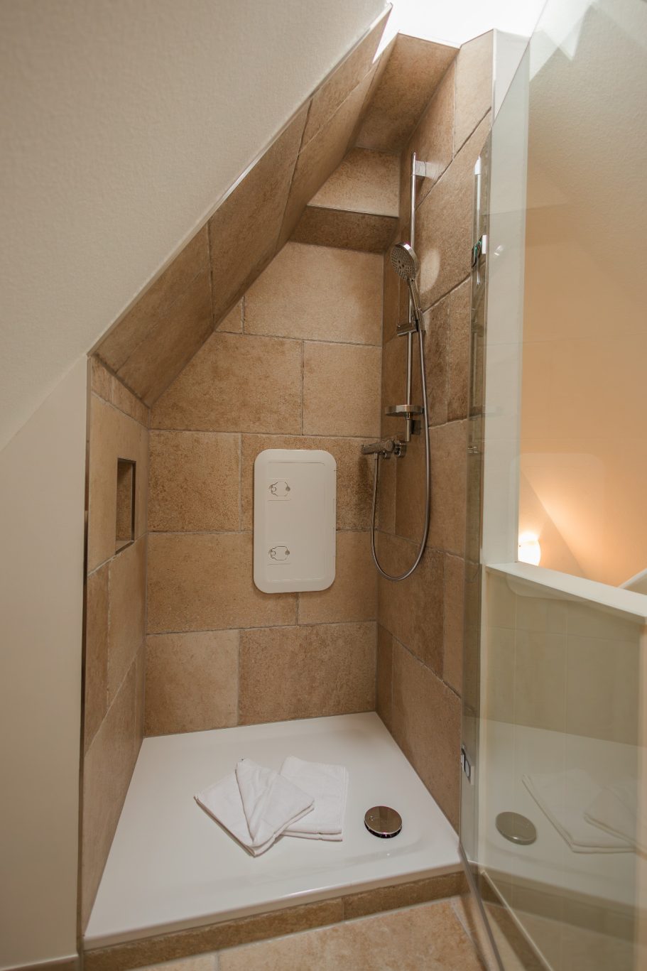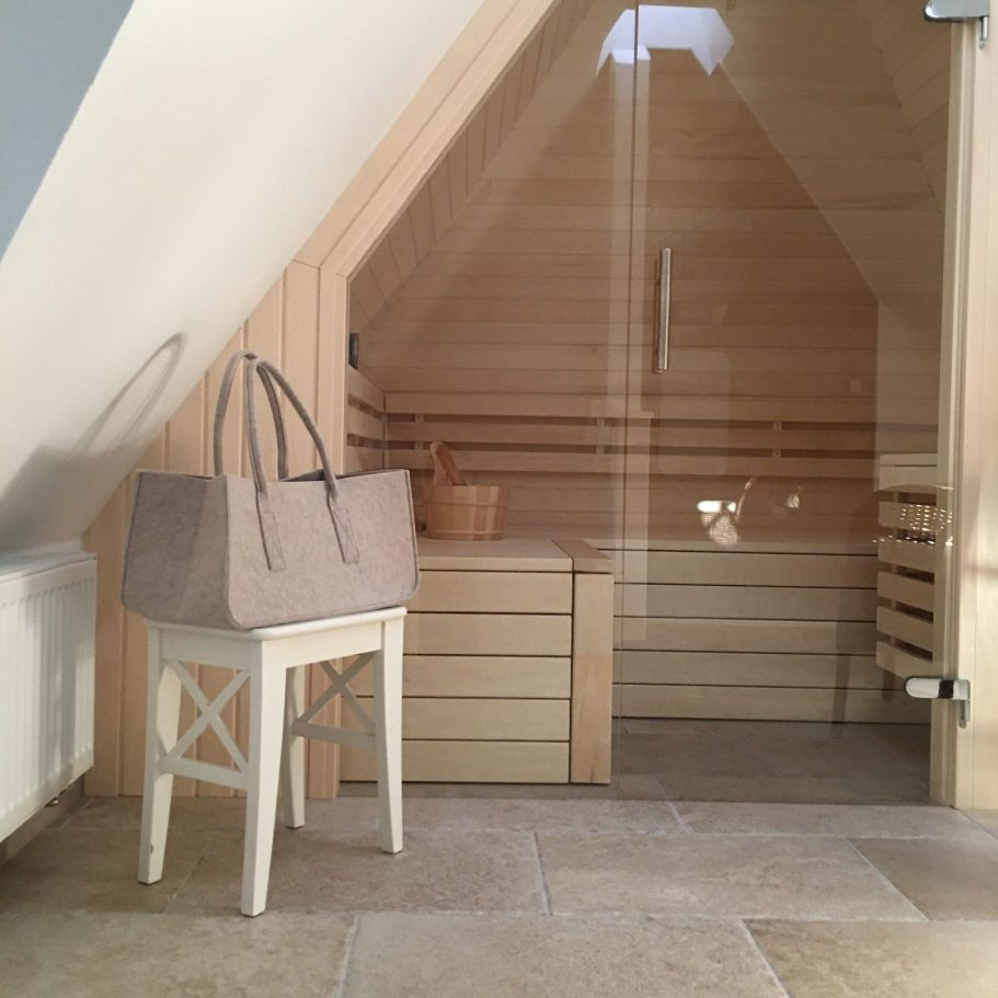 - Die im Spitzboden edel verbaute Sauna und Glas-Stein-Dusche lädt zur Wellness ein. Der Meditations-Nebenraum ermöglicht Entspannung pur